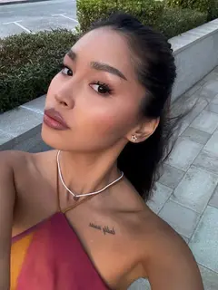 У меня длинные тёмные волосы, которые я часто заплетаю в быстрый хвостик – удобно и стильно. Я худощавая, 170 см роста, вес около 51 кг, так что выгляжу почти как модель из подиума, но без надутой помпы. У меня маленькая естественная грудь‑A, всё естественно, без искусственных вбиваний. На одном плече есть небольшая татуировка, которая напоминает мне о путешествиях и свободе.